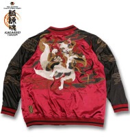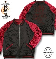 アイテムで選ぶ > アウター > ジャンパー・ブルゾン > 大きいサイズ 絡繰魂 猫又 リバーシブル スカジャン ワイン×ブラック 3L 4L 5L 6L 送料無料