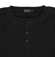 ブランドで選ぶ > E > EL.FO > 大きいサイズ EL.FO 無地 ワッフル編み ヘンリーネック 長袖 Tシャツ ブラック 3L 4L 5L 6L