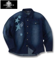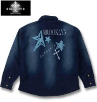 各特集ぺージ > ロック、悪系特集 > 大きいサイズ GLADIATE 刺繍 ストレッチ デニム 長袖 シャツ ネイビー 3L 4L 5L 6L 送料無料
